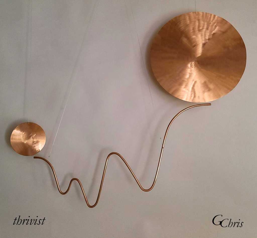 Sculpture: Thrive! for all forever, 1′ x 1′, metal mobile
