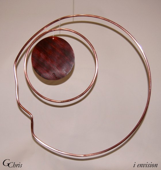 Sculpture: i envision, 2′ x 2′, wood and metal mobile