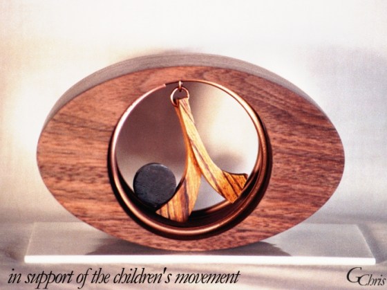 Sculpture – in support of the children’s movement, <1′ x<1′, wood and metal stabile