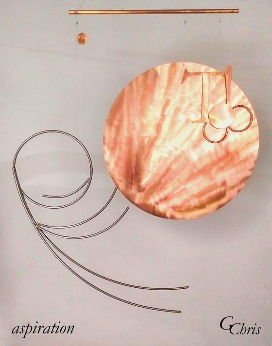 Sculpture: ever higher aspirations, 3′ x 4′, wood and metal mobile