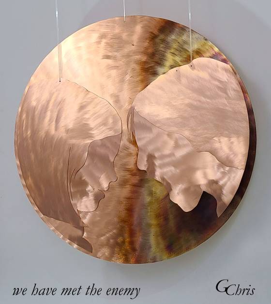 Sculpture: we shall save the world, 6′ x 4′, metal mobile
